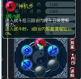神机步1层、愤恨、撞击、无畏3个低级内丹满层。