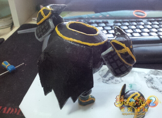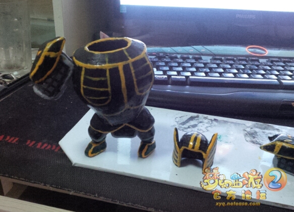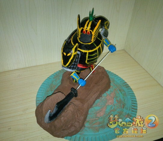 做的仓促 底座还没干 也就没上色 不过无所谓了 鬼将才是主角 做完之后最大的问题就是太过脆弱 肩膀和头盔只靠两个很小的点粘在身体上 稍微一碰就会断掉.... 所以做完以后我就没敢再动 可是第二天家里来了一名传说中的熊孩子 几下就给它分尸了 一脚将其踹出去 从新粘上以后小心翼翼的摆在安全的地方 只远观而不亵玩焉..