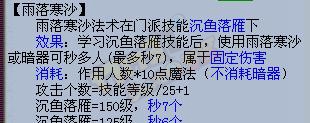 这里写明 雨落寒沙 是法术 在沉鱼落雁下。。大家注意
