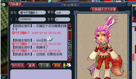 叫我300万还给她,他刚掉线了。一看就知道不是这个人的了。
