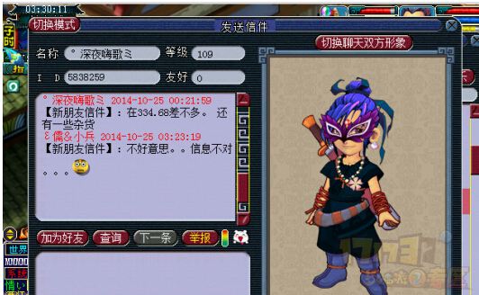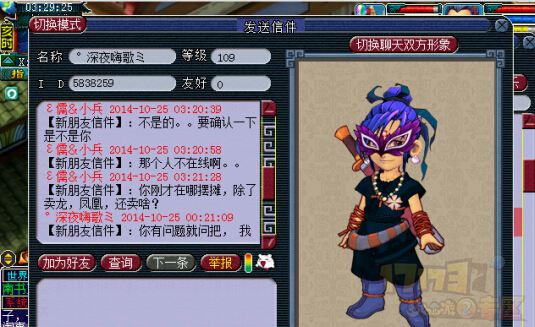这个人是剑侠客,有点可怕。他说摆摊的位置和一只凤凰宝宝都说对了!!不过我印象中不是这个名字,所以最后用不好意思,信息不对吓跑了他。