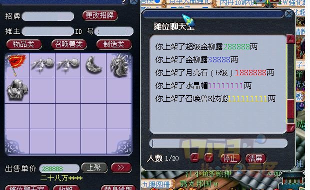 让摊位聊天室不再是摆设,物品售价金额颜色更是一目了然(下图本人PS)