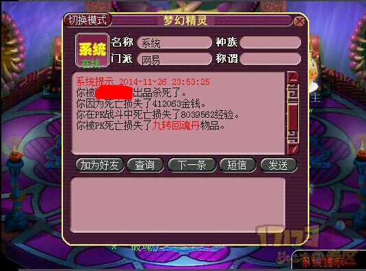 看着梦幻窗口右下方不停闪烁的小拳头