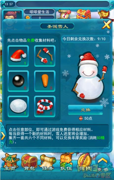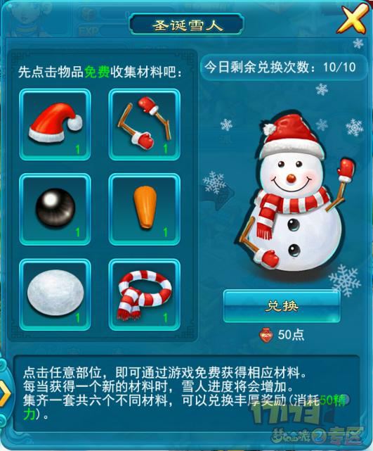 收集一套材料,消耗50精力兑换一次奖励,每天可兑换10次。