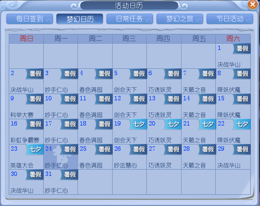 4、“活动日历”、“梦幻罗盘”功能合并及优化,在部分服务器测试。