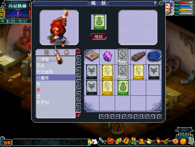1.玩家在炼妖界面中,使用召唤兽可以点化变身卡,无论点化成功与否,召唤兽都将消失。